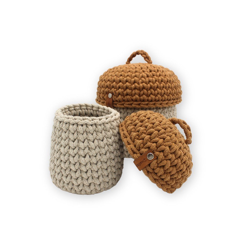 Elegantní kulatý háčkovaný košík ve tvaru houby vyráběný s láskou v České Republice. Každý kus je jedinečný, zdobený krásným háčkovaným vzorem, který zdůrazňuje jeho autentičnost a precizní zpracování. Háčkované dno vím umožní košíček prát. Tento košík není jen praktickým doplňkem, ale také vkusným kouskem ruční práce, který okouzlí svým šarmem.